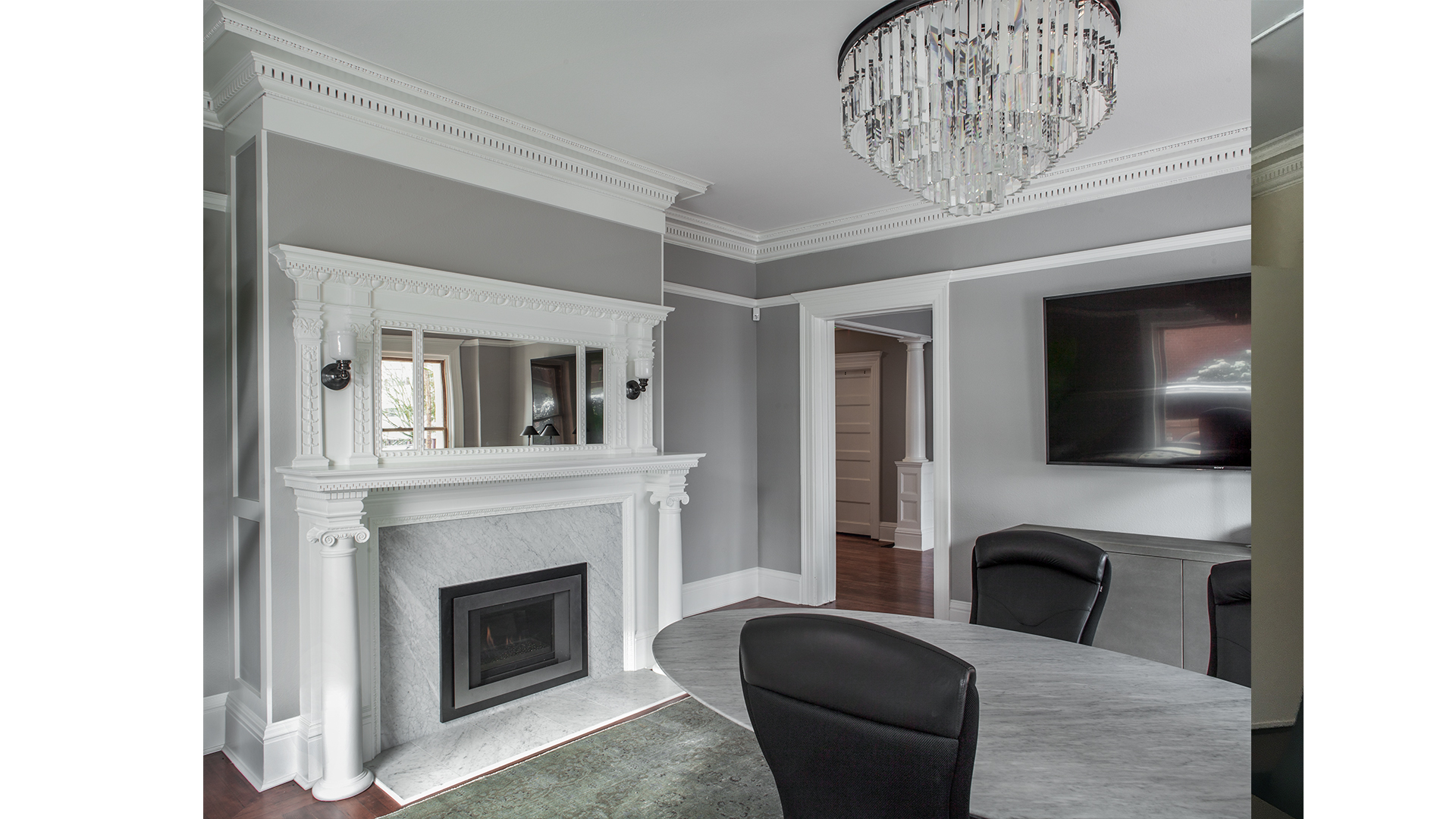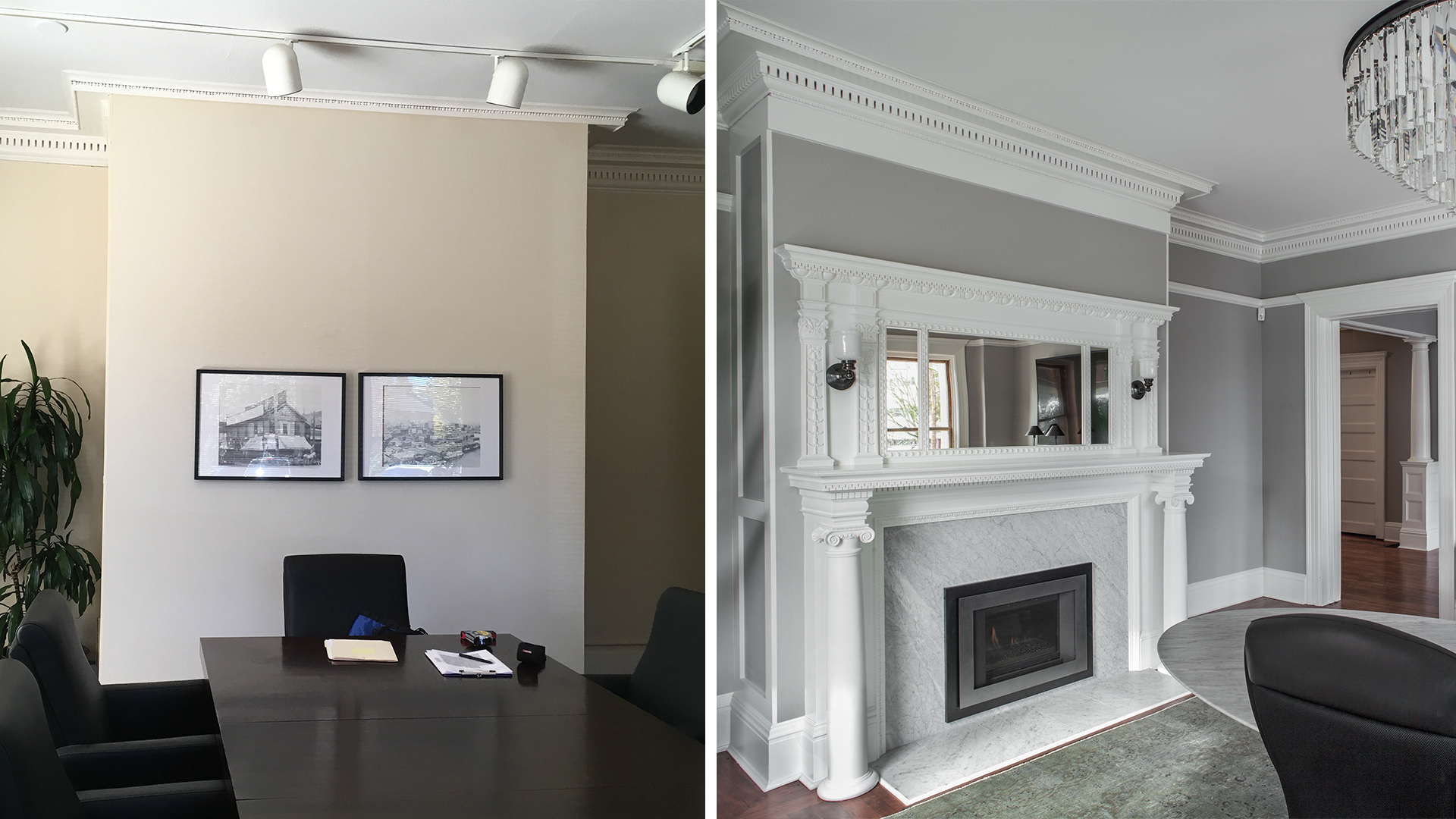 A well-established Portland-based financial planning firm signed on as a tenant for the 1st floor, 2nd floor and attic. They, like the new owners, appreciated the beautiful historic details that were present in the building, and had a vision of what the interior spaces could become once fully restored. It was clear a major renovation of the interior was needed prior to the tenant moving in, not only to bring all of the rooms back to their former glory, but to bring the building systems up to current code and provide the tenant with modern commercial amenities.