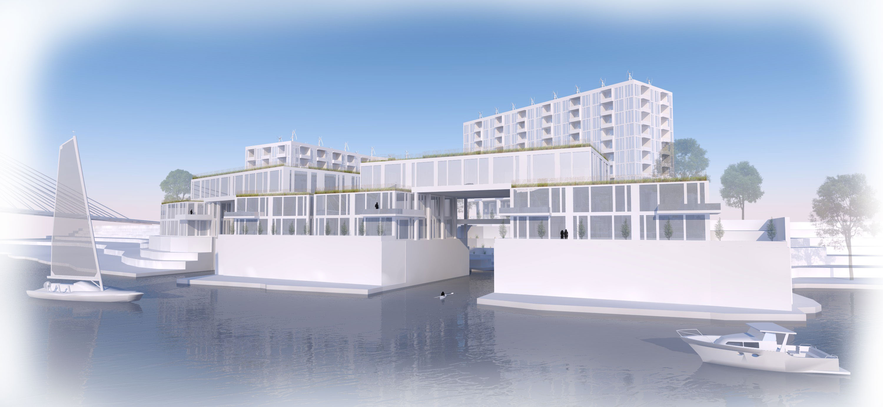 Our notion is to re-utilize the river for the healthy life-styler and we like the idea of waking up at the river’s edge, walking downstairs to community storage, grabbing our kayak and setting out in the morning light to meet our city and river from a new, modernized vantage.