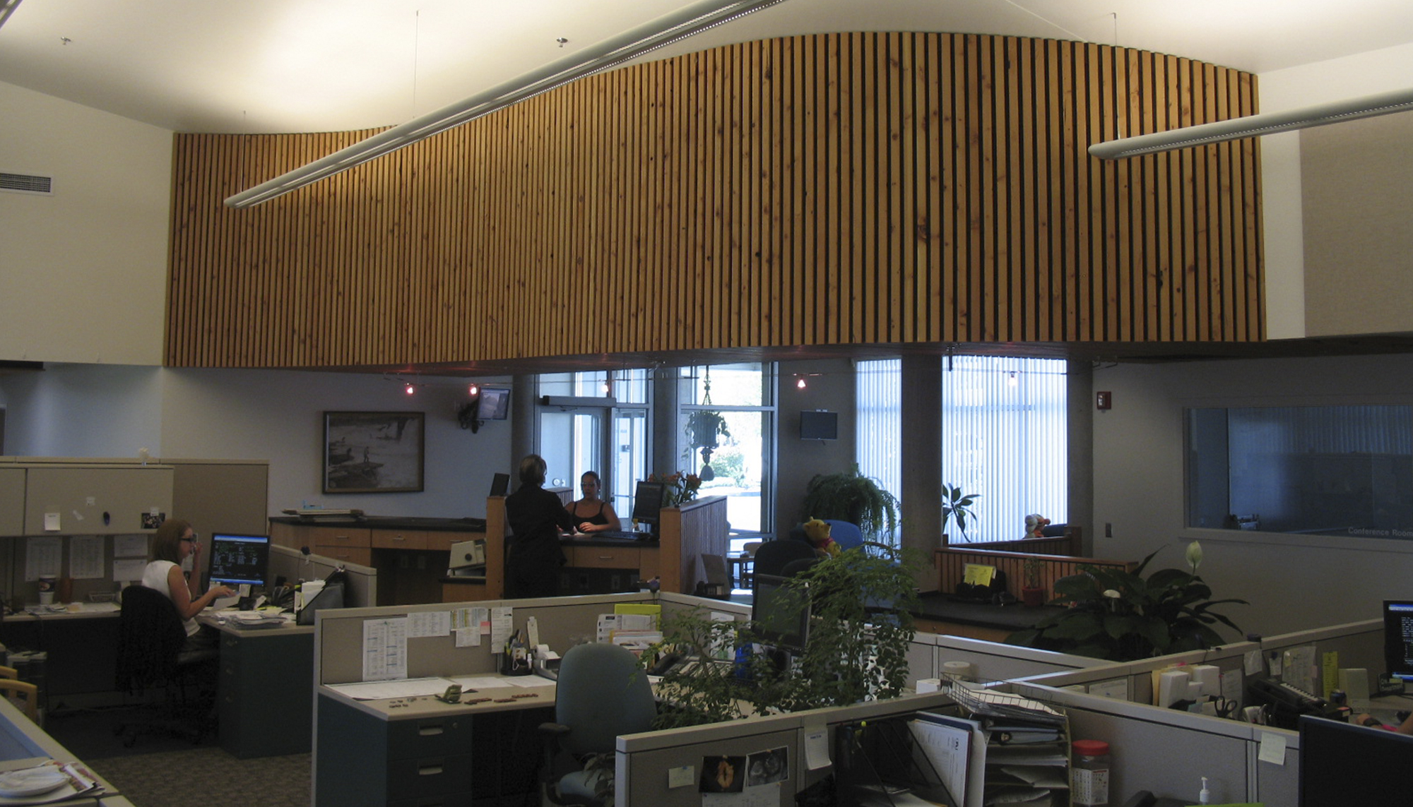 The Northern Wasco County PUD project expands and renovates a ten year old existing facility. The magnificent site overlooking the Columbia River in The Dalles, Oregon had little room for expansion. Job requirements included increasing office space for the administrative, IT, and hydro departments; creating a new community/board room; providing a new truck and vehicle garage; and updating the finishes throughout.