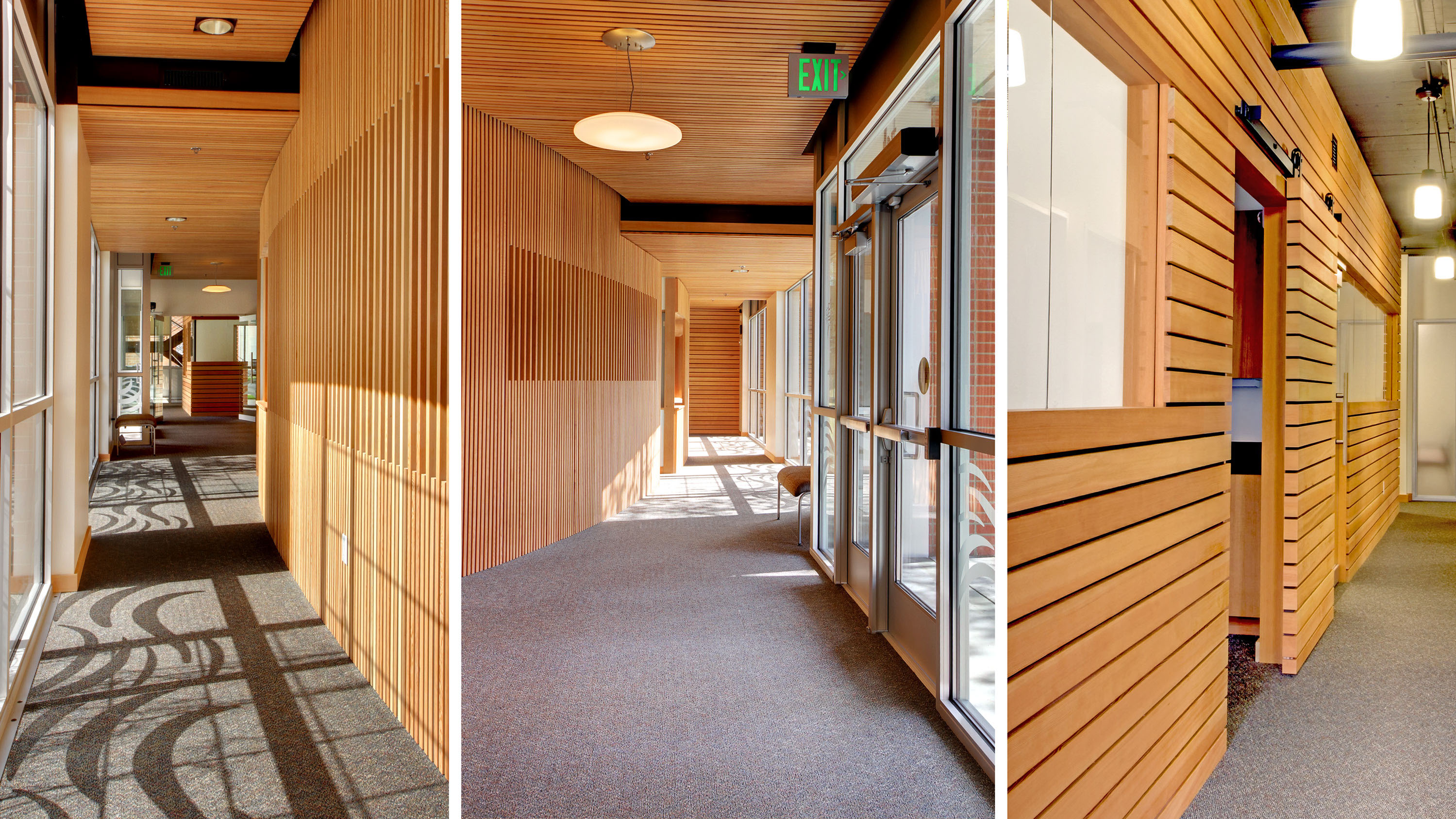 This new 7,400 square foot tenant improvement project is home to the faculty offices of Pacific University’s College of Business and College of Health Professionals. Meeting rooms and a state-of-the-art classroom were inserted into the ground floor of Hillsboro’s Intermodal Transit Facility. Wood, concrete and glass are combined in simple shapes and clean lines to evoke a modern, academic environment.