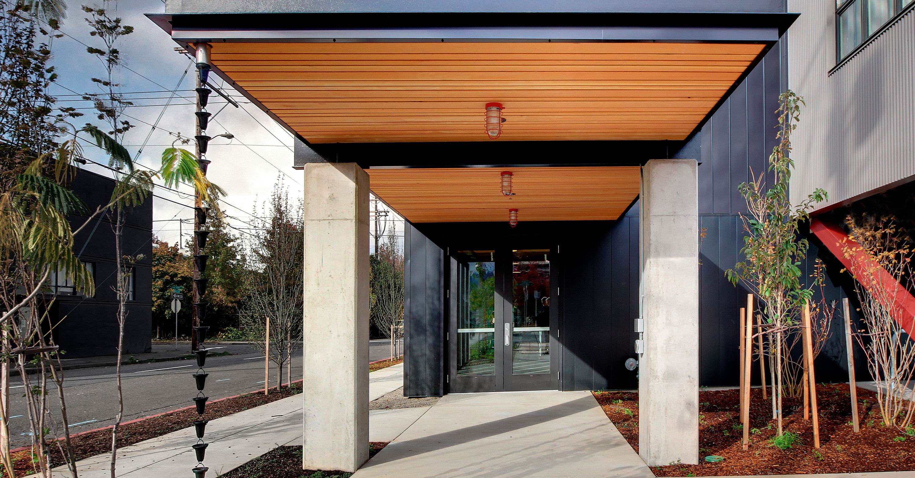 The New York Industrial Building houses approximately 120,000 ft2 of industrial space within a 24,000 ft2 footprint: that would be three Portland city blocks in a single-story open design. We’ve made the inside spaces endlessly flexible; each floor can accommodate up to 14 tenants—one tenant can take an entire floor or anything less. Two loading docks and two elevators (one for people and one for freight) allow for easy access to renter’s spaces. Each floor has consolidated common areas for bike storage, showers, restrooms and cleaning closets. And the 6 story building is designed to reference Portland’s rich vertical industrial past while modernizing its environmental impact with natural lighting, natural ventilation, green roofs, and storm water planters. Vertical industrial construction symbolizes our belief in dense, diverse urban cores. Reintegrating industry into city life means that not just office workers will live in our urban areas. The New York is a prototype of what we hope will be the norm in our more sustainable, self-sufficient, and socially equitable future metropoles.