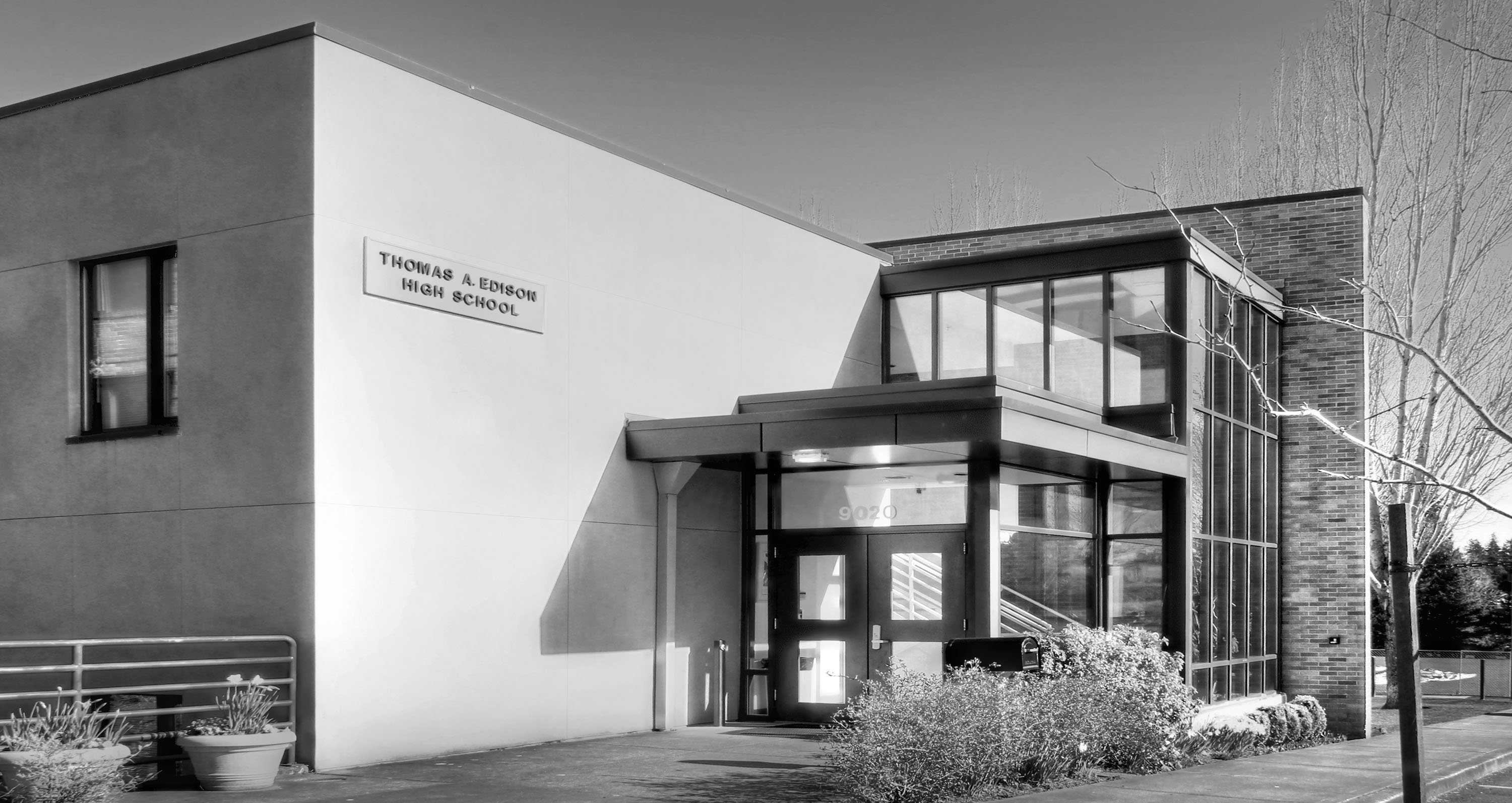 Thomas A. Edison High School is an alternative school devoted to helping students with learning challenges succeed. The building serves a small student body and is located on the campus of an existing private high school. Because of the school’s physical setting and its extraordinary mission, the building is designed with the school’s intimate, community-oriented tradition in mind. To foster a sense of togetherness and community, the building is arranged around a large room where all staff and students gather once each day. Surrounding this space and radiating from it are classrooms, administration and support spaces. The building plan encourages student to student and student to teacher contact. Hallways are designed for loitering and the access to classrooms is through the central two story gathering space.