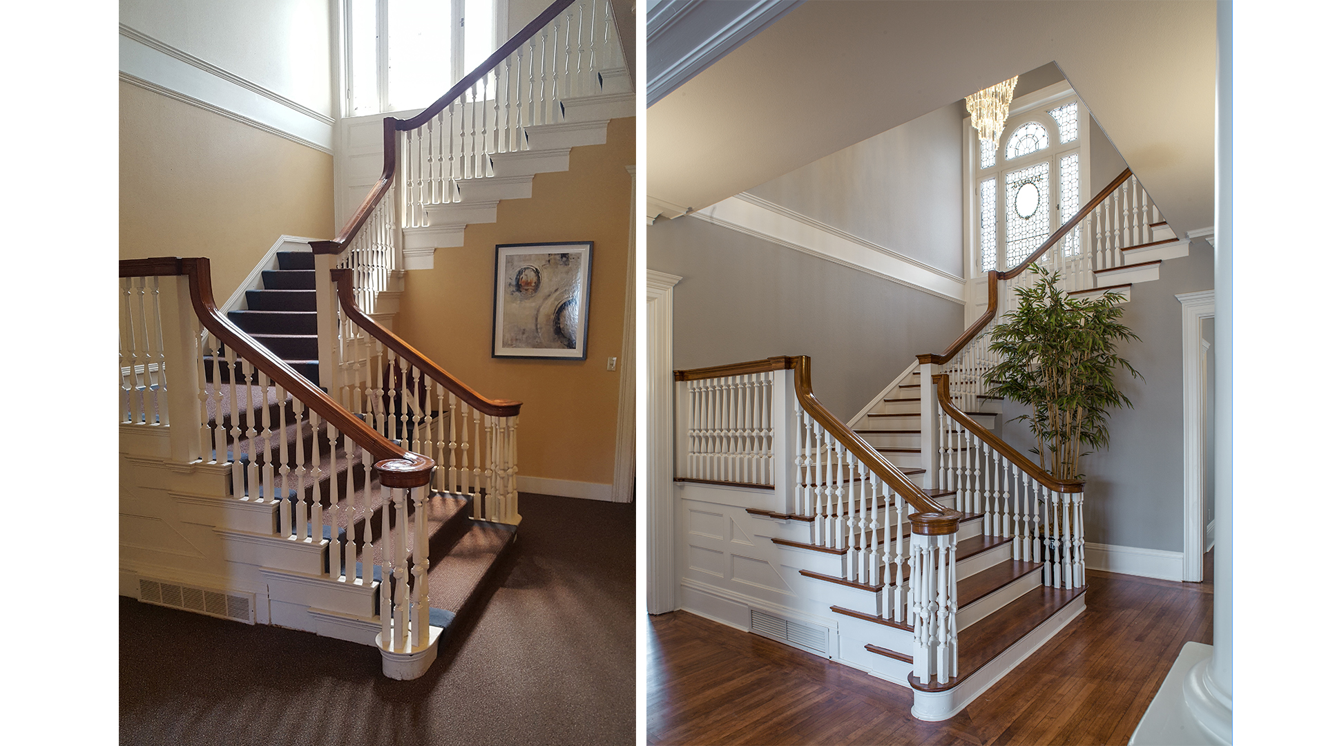 A well-established Portland-based financial planning firm signed on as a tenant for the 1st floor, 2nd floor and attic. They, like the new owners, appreciated the beautiful historic details that were present in the building, and had a vision of what the interior spaces could become once fully restored. It was clear a major renovation of the interior was needed prior to the tenant moving in, not only to bring all of the rooms back to their former glory, but to bring the building systems up to current code and provide the tenant with modern commercial amenities.