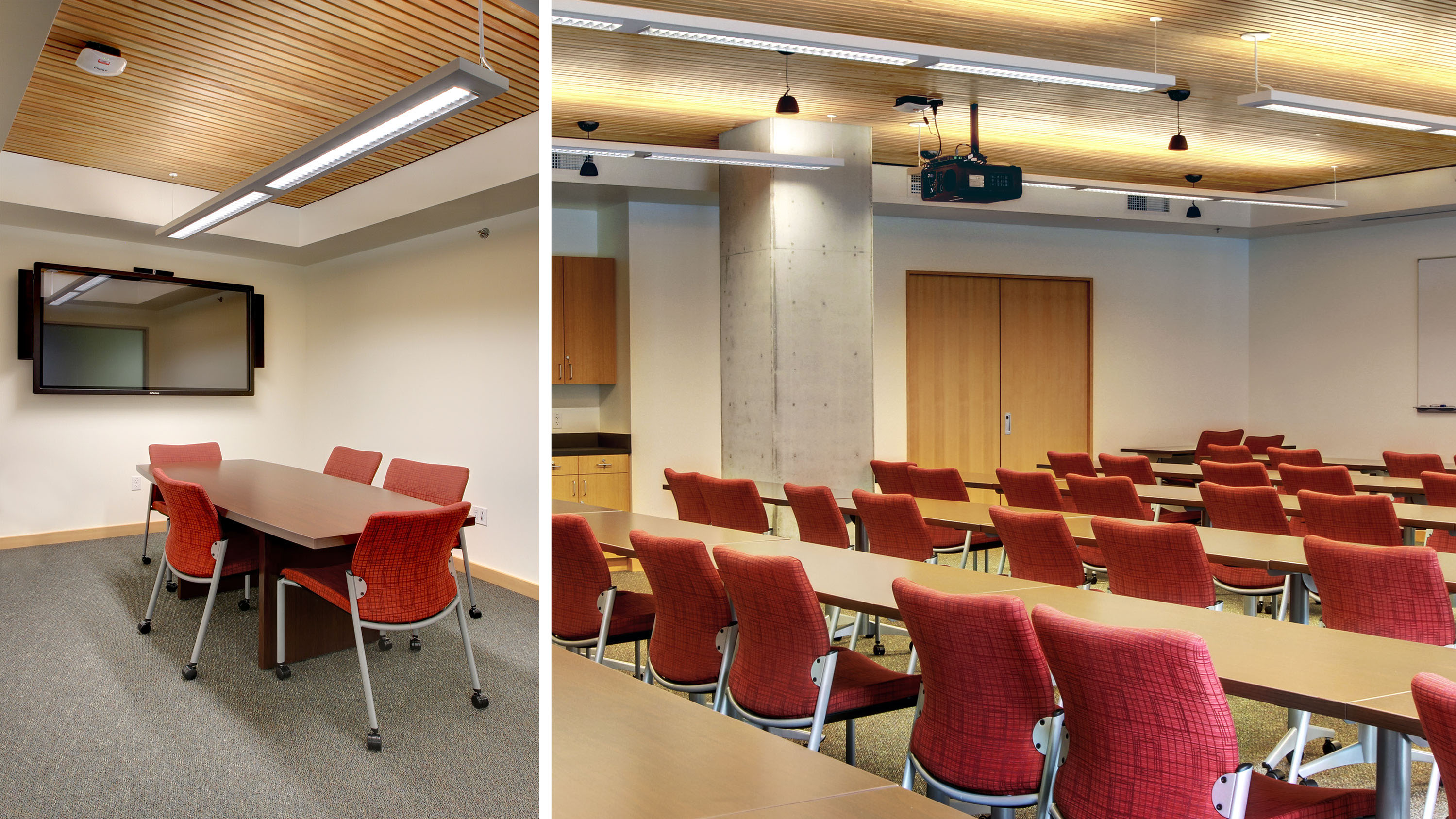 This new 7,400 square foot tenant improvement project is home to the faculty offices of Pacific University’s College of Business and College of Health Professionals. Meeting rooms and a state-of-the-art classroom were inserted into the ground floor of Hillsboro’s Intermodal Transit Facility. Wood, concrete and glass are combined in simple shapes and clean lines to evoke a modern, academic environment.