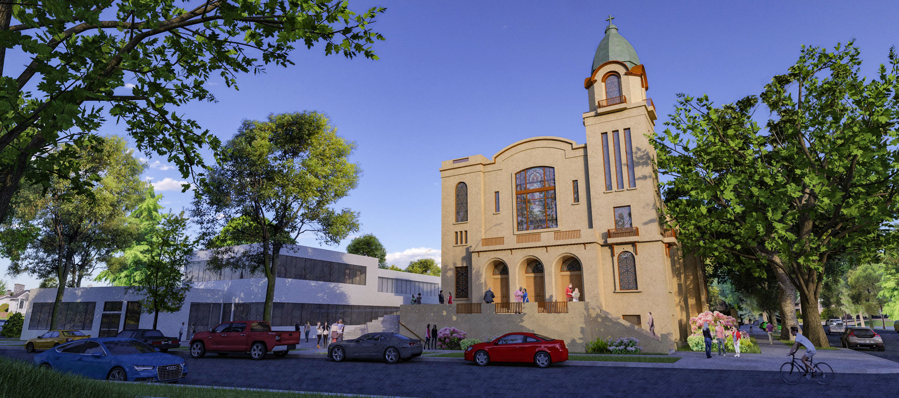 Our master plan envisioned a multiphase project that would remove the existing school and build a new educational facility along the west side of the campus, unblocking the churches windows returning light to the inside of the worship space. Between the existing church and new education facility we’ve created a central plaza that connects the street to the parking in the rear, essentially creating a “front door” to the campus making the site understandable. Over time, as the need arises, the new education wing can easily expand to add classrooms, community spaces and/or athletic facilities.