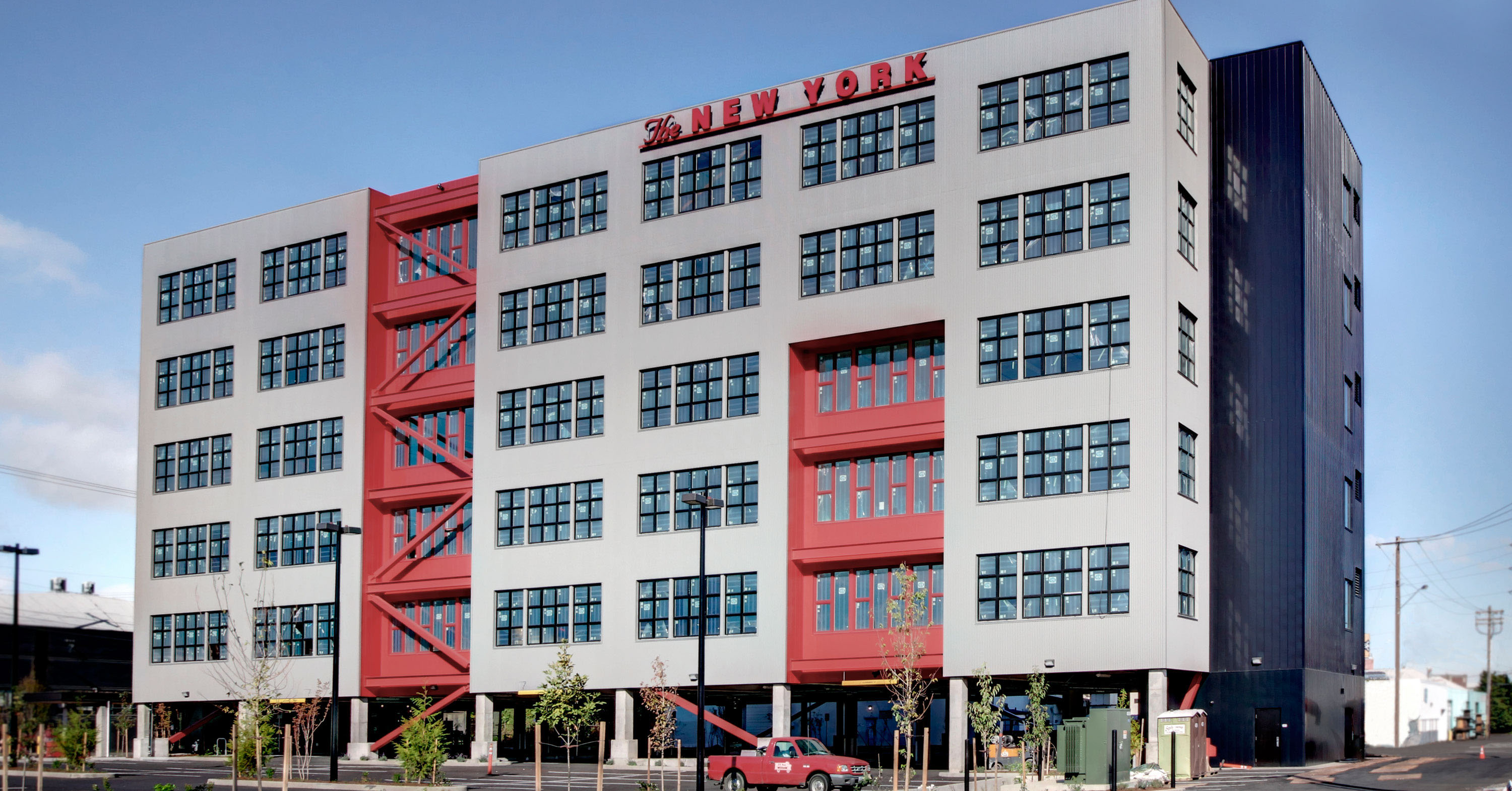 The New York Industrial Building houses approximately 120,000 ft2 of industrial space within a 24,000 ft2 footprint: that would be three Portland city blocks in a single-story open design. We’ve made the inside spaces endlessly flexible; each floor can accommodate up to 14 tenants—one tenant can take an entire floor or anything less. Two loading docks and two elevators (one for people and one for freight) allow for easy access to renter’s spaces. Each floor has consolidated common areas for bike storage, showers, restrooms and cleaning closets. And the 6 story building is designed to reference Portland’s rich vertical industrial past while modernizing its environmental impact with natural lighting, natural ventilation, green roofs, and storm water planters. Vertical industrial construction symbolizes our belief in dense, diverse urban cores. Reintegrating industry into city life means that not just office workers will live in our urban areas. The New York is a prototype of what we hope will be the norm in our more sustainable, self-sufficient, and socially equitable future metropoles.