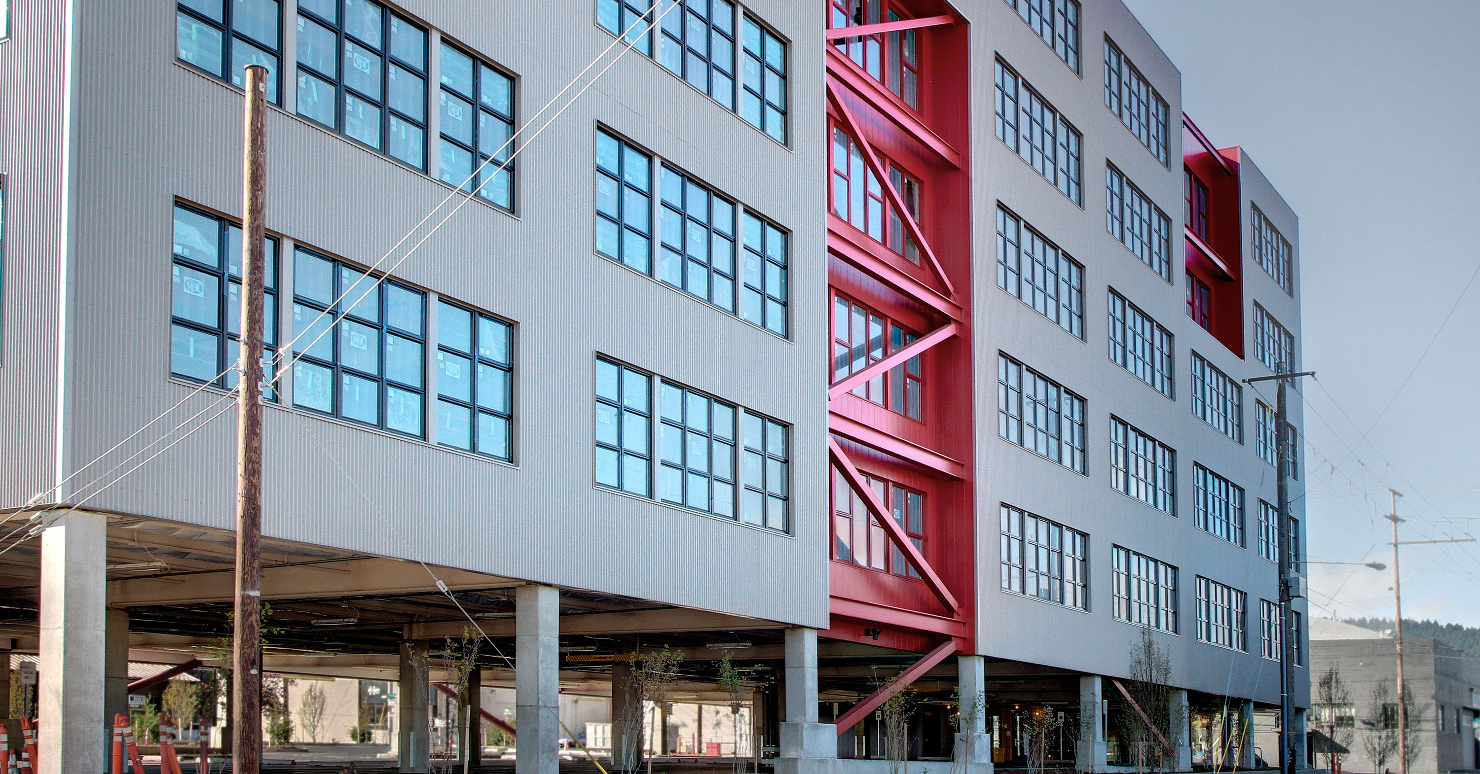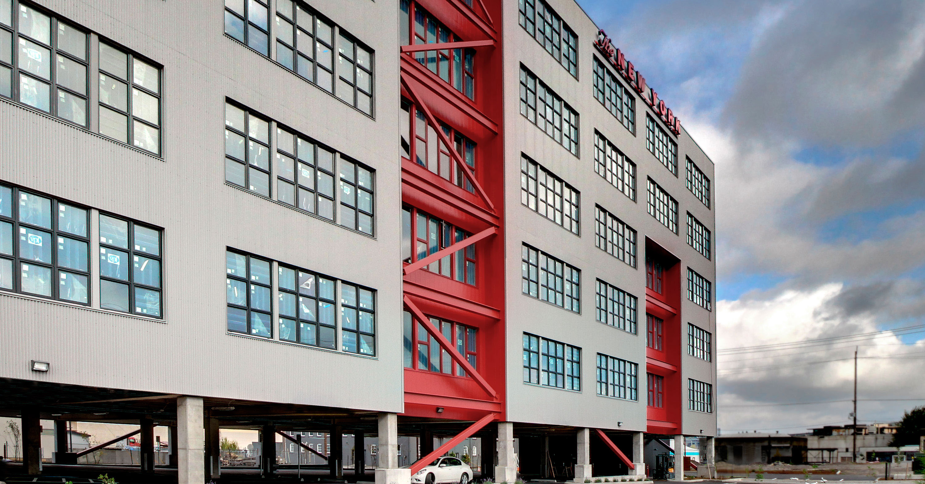Our award-winning New York Industrial Building is the first multi-storied industrial building in Portland in over 60 years. So it might seem strange that we consider it a glimpse of the future. Before the automobile, factories were often the tallest structures within a city. They needed to be close to markets where they could vend their goods, close to water and railway transport to ship their goods, and near to the residences of workers who made their goods. To maximize space on expensive city plots owners built up. Then came the auto. As cars and trucks transformed the shipping industry and decentralized our urban cores; as denizens increasingly grew tired of smokestacks in their backyards; and as modern building materials and techniques made cheap open structures possible, factories became single-storied buildings on large plots of suburban land. And many thought this was right and good, but of course, times have changed.